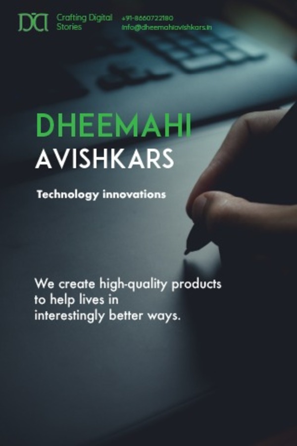 Dheemahi Avishkars is a Technology Company that aims to energize the transformation of society to attain a sustainable future by connecting people and software in the most holistic possible way. Dheemahi Avishkars pushes the boundaries of technology to drive performance to new levels through the development of thoughtful, comprehensive approach that we believe aligns with our values and maximize the impact we can make as an enterprise.